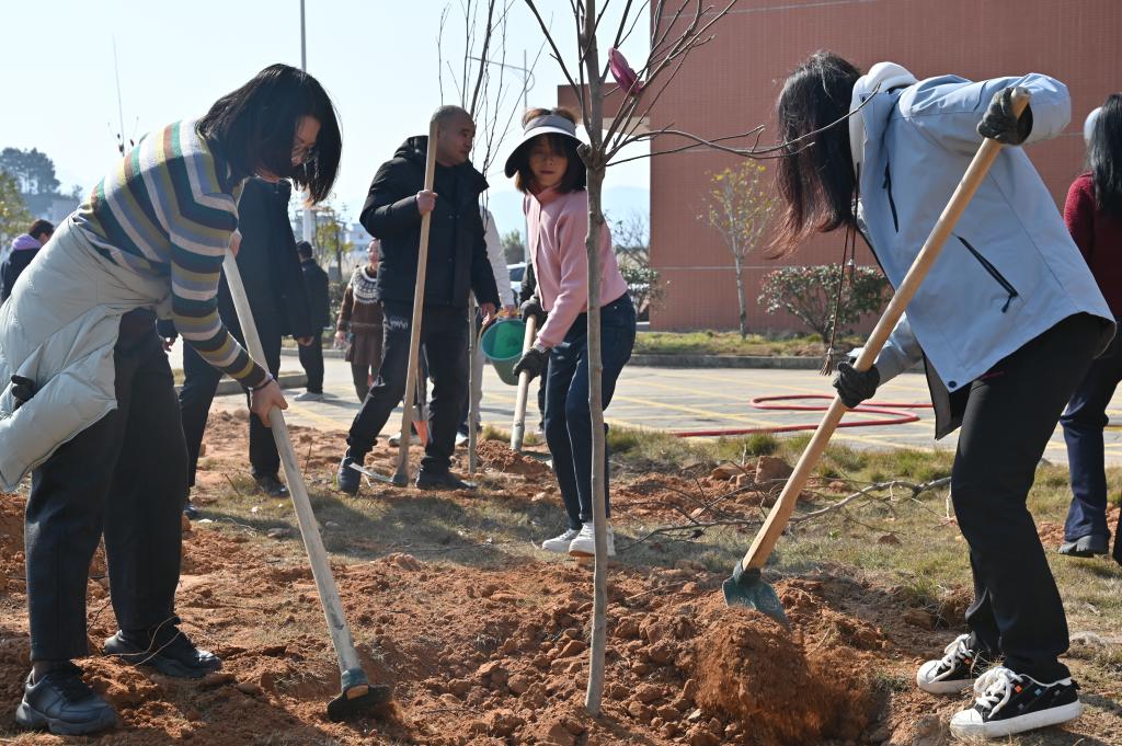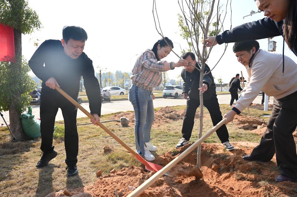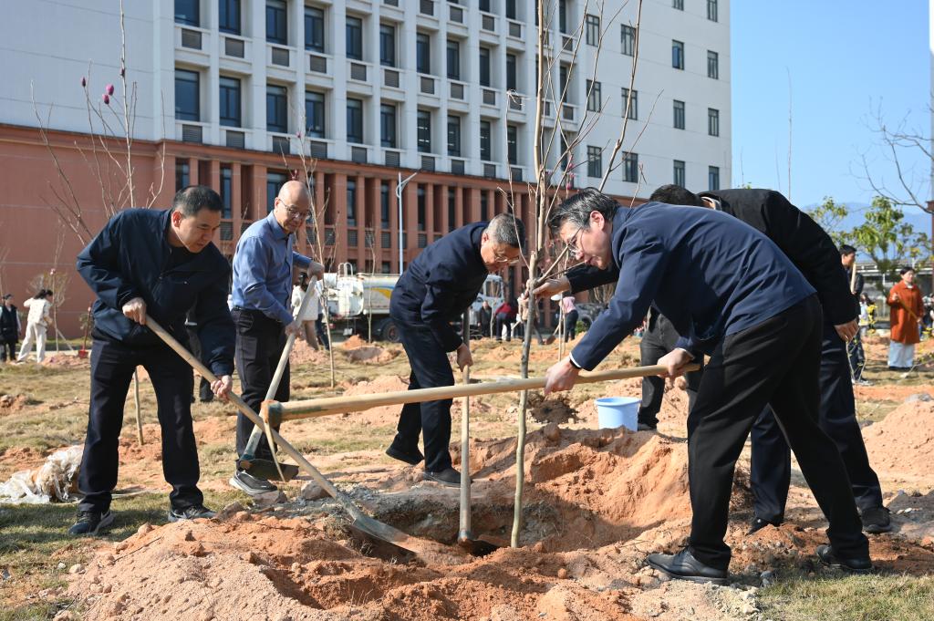 春风拂沃土,植树正当时。为深入贯彻习近平生态文明思想,牢固树立和践行“绿水青山就是金山银山”的理念,积极响应国家关于推进“三绿”并举、实施“四库”联动的生态战略号召,3月12日上午,我校在医学院2号楼北侧举行义务植树活动,校党委书记林清泉,党委副书记江潮炳,副校长颜桂炀,副校长陈旺玉,校纪委书记、监察专员苏天恩与200多名师生志愿者一起,以实际行动厚植生态底色,共建美丽校园。
