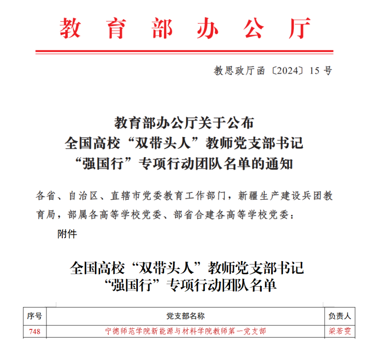 新能源与材料学院教师第一党支部入选全国高校“双带头人”教师党支部书记“强国行”专项行动团队