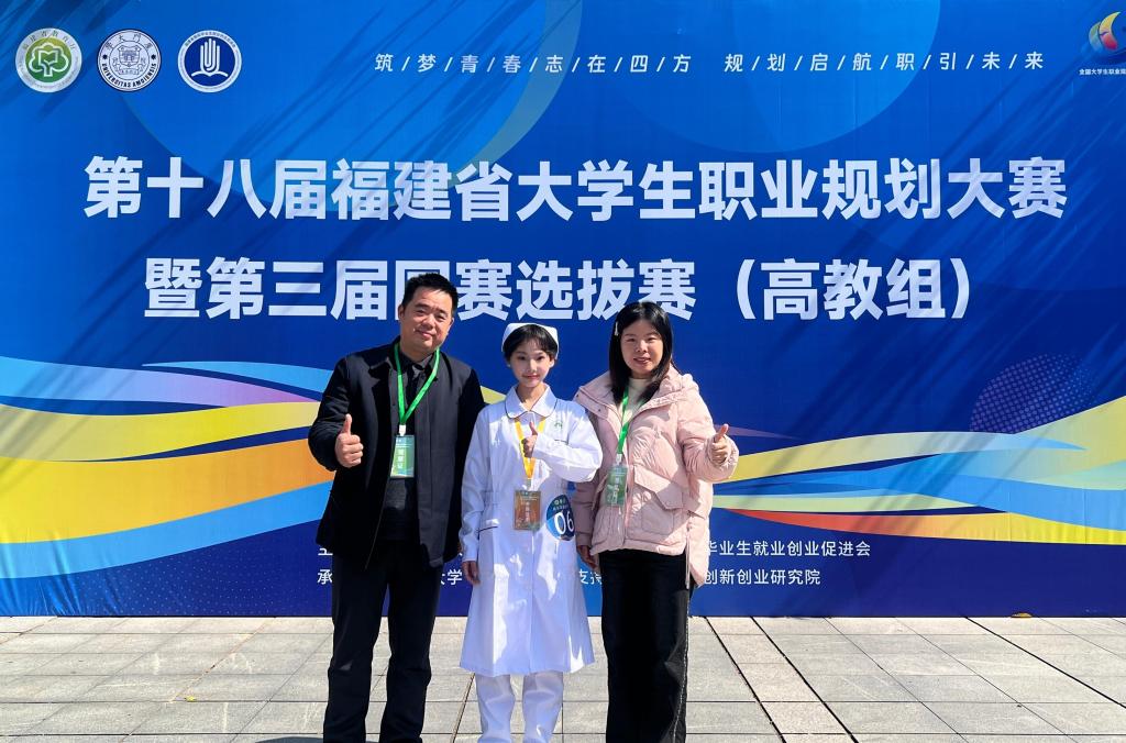 本届大赛以“筑梦青春志在四方,规划启航职引未来”为主题,聚焦引导大学生树立科学职业发展理念、提升职业规划意识与就业核心竞争力,全省各高校共报送作品478件,经过层层严格遴选,仅有147名选手、团队突围晋级省级决赛,其中成长赛道高教组仅42人入围,赛事规格高、竞争态势异常激烈。我校医学院周芊芊同学凭借出色的职业规划方案与现场表现,摘得福建省第十八届职业规划大赛高教组成长赛道银奖;旅游与管理学院郑紫欣同学荣获高教组成长赛道铜奖;陈思企团队深耕教学创新,拿下课程教学赛道银奖。