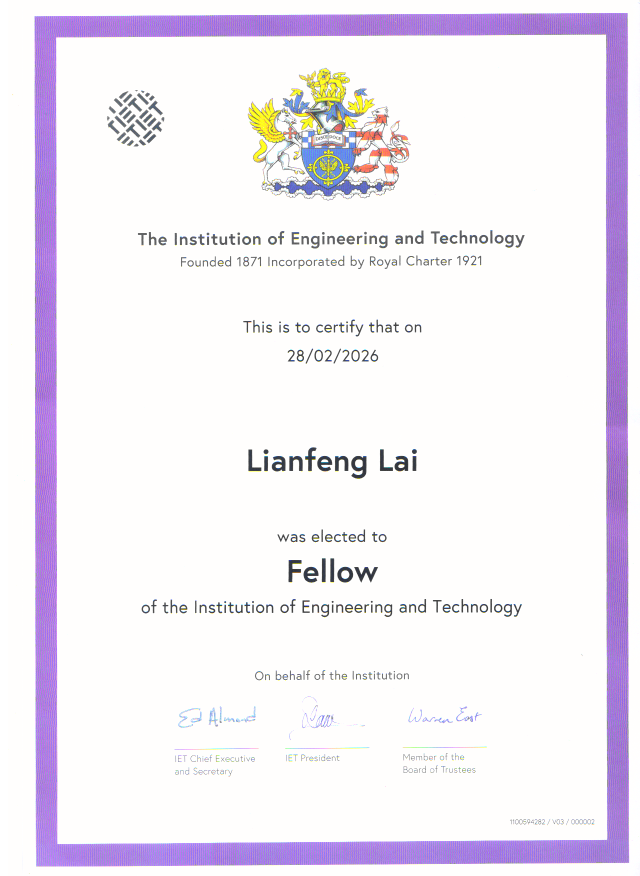 IET是欧洲规模最大、全球第二的国际专业学会,目前在全球150个国家拥有16.8万名会员,专业分类包括能源电力、交通运输、信息与通信、设计与制造、建筑环境5大行业,40多个专业领域。IET Fellow由IET学会授予在领域内具有持续卓越成就的杰出人才,每年遴选约200名,其中中国内地入选者10-20名。