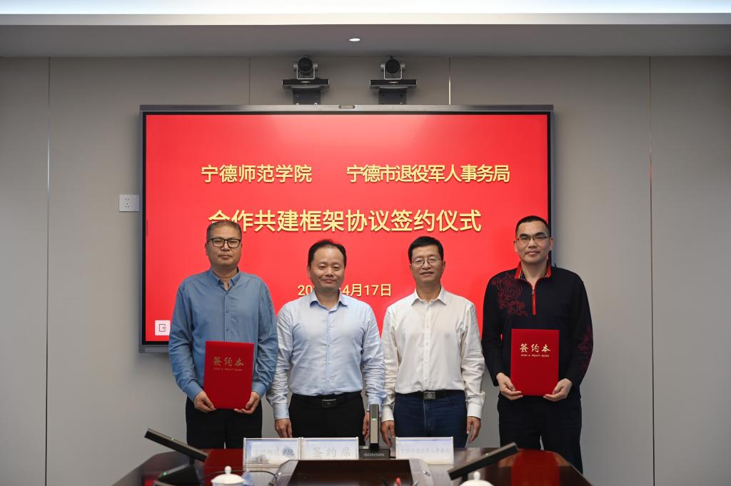 4月17日下午,我校与宁德市退役军人事务局合作共建框架协议签约仪式在校举行。副校长应少明、宁德市退役军人事务局局长许余丁出席并见证仪式。继续教育学院院长郑允贵、宁德市退役军人事务局副局长王耀代表双方签约,标志着校地协同服务退役军人、深化双拥共建进入全方位常态化新阶段。