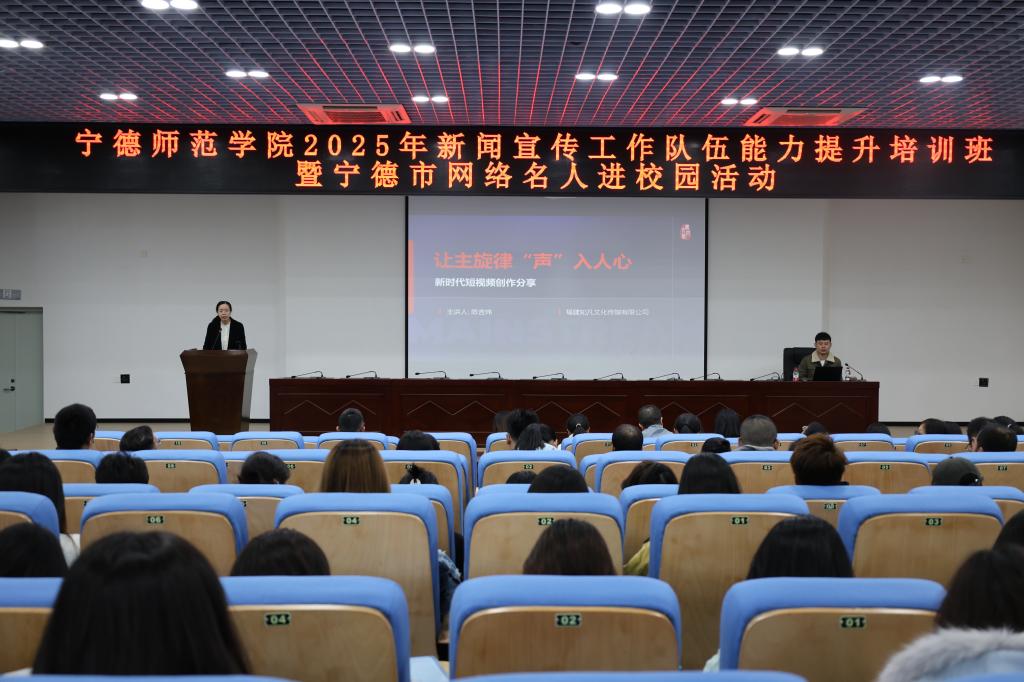 为深入学习贯彻党的二十届四中全会精神和习近平文化思想,全面贯彻落实习近平总书记关于新闻宣传工作的重要论述,提高我校新闻宣传工作队伍的业务能力,提升新形势下学校新闻宣传的质量和水平。12月份以来,宣传部举办宁德师范学院2025新闻宣传工作队伍能力提升培训暨宁德市网络名人进校园活动,全校师生新闻宣传队伍290余人参加培训。