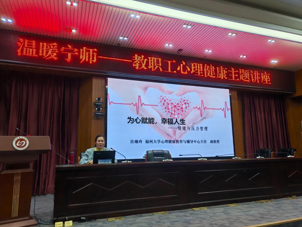 为切实提升教职工心理健康服务水平,进一步营造温暖、健康、积极向上的校园文化氛围,11月13日,我校邀请福州大学心理健康教育与辅导中心主任许琳玲副教授在行政楼三楼报告厅举行“为心赋能,幸福人生——压力与情绪管理”专题讲座,吸引百余名教职工现场聆听。