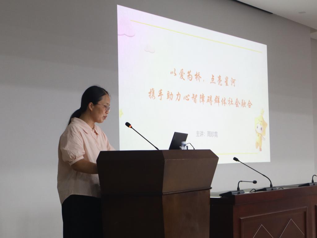 周珍霓老师以爱心和责任投身助残事业,带领宁德市蓝丝带助残帮扶中心和我校熠星志愿服务队,为特殊群体及家庭提供帮助,传递了社会温暖。她通过分享关于帮扶“星星的孩子”的经历,深入浅出地阐释了高校青年教师应有的师德修为和责任情怀,引发在场教师的强烈共鸣。