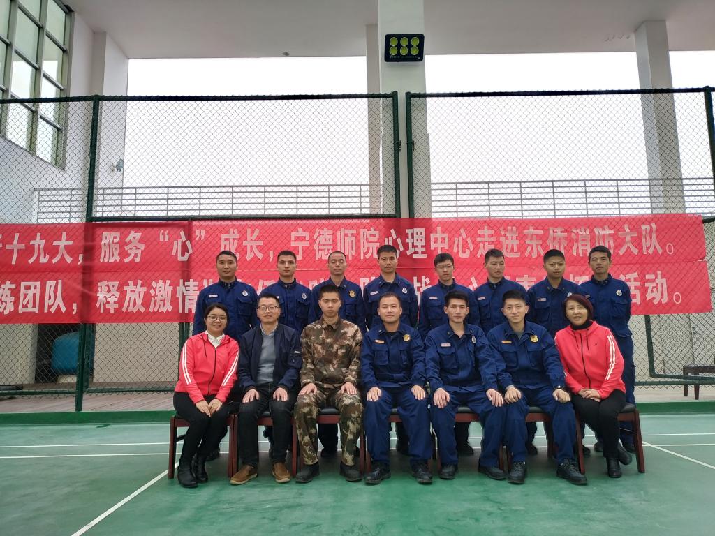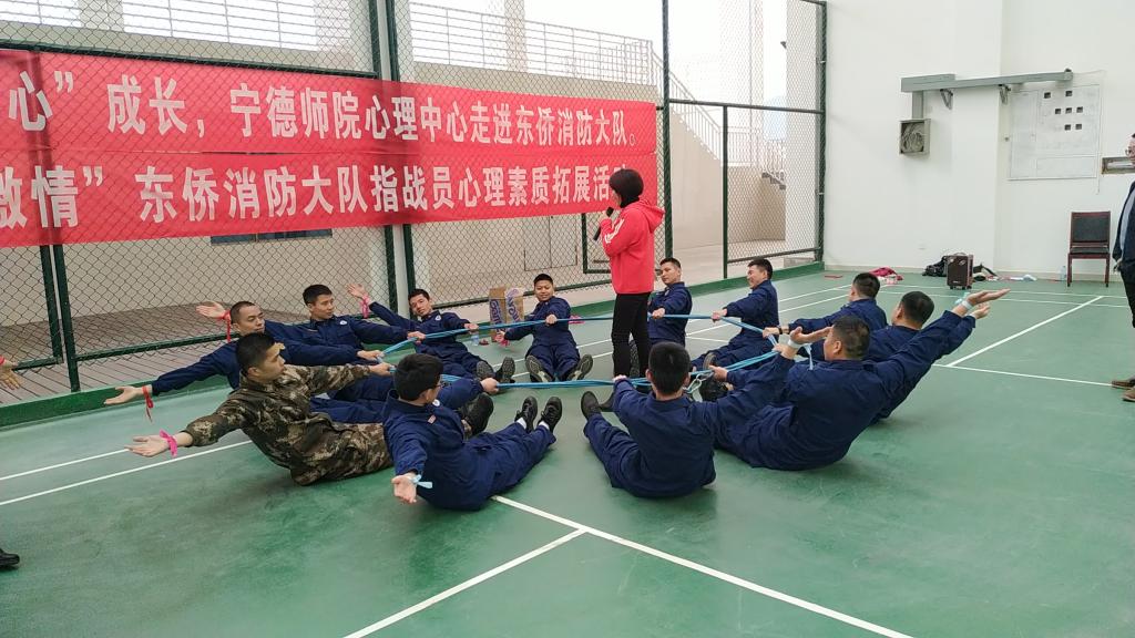 当前,正值消防体制改革和春季消防安保任务关键时期,全体消防指战员的压力明显增大。为扎实做好一线消防指战员的心理疏导和矛盾化解工作,增强团队协作能力,3月31日下午,我校学生工作部(处)心理健康教育中心组织3位心理辅导老师来到宁德市东侨消防大队为全体消防指战员进行团体心理辅导。