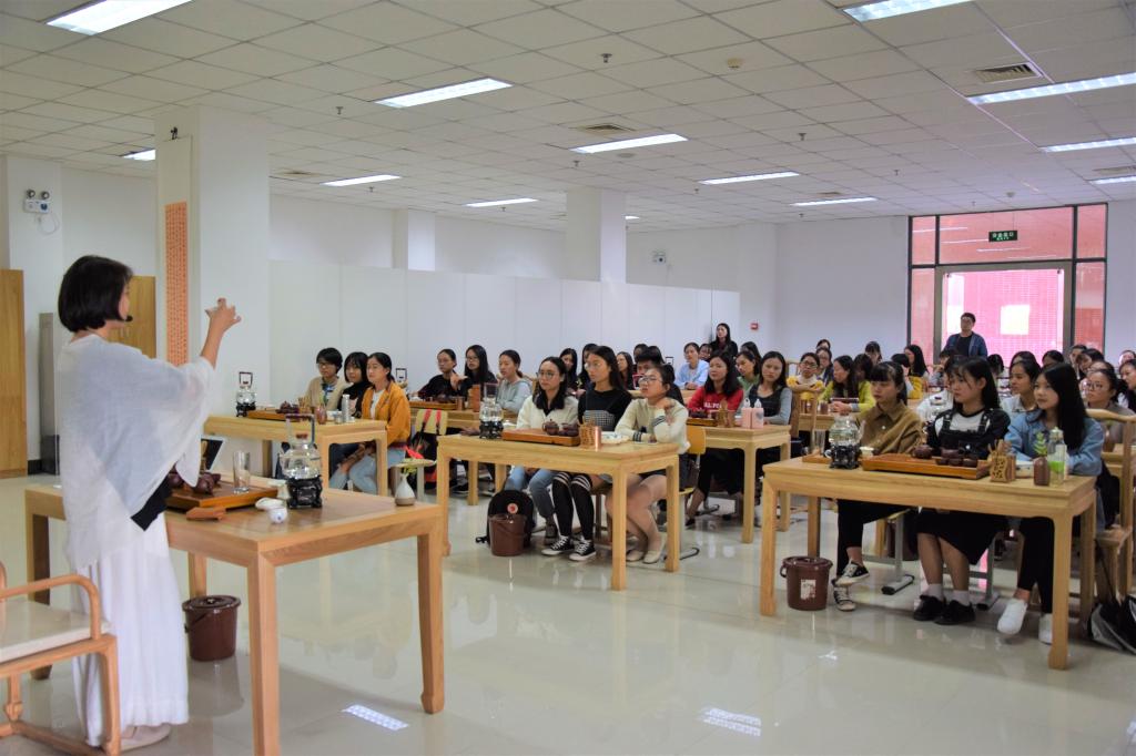 本次课的主题为“茶礼”,授课地点安排在茶产业与文化研究所茶艺培训室内。课堂上,陈赞琴老师先对茶的发展历史、类别、茶文化尤其是茶礼仪基本知识做了简要介绍,带领大家正确认识中国茶,使学生对中国茶文化的博大精深有了进一步的认识。