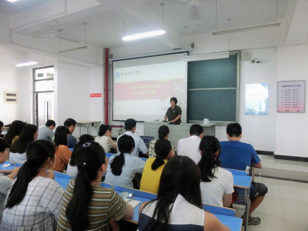 9月18日上午9时,生命科学学院2017级新生欢迎会在CC201举行。出席本次大会的有我院党委书记陈爱平、院长刘伟、叶祖云教授、综合办公室副主任缪莹、教学科研办公室负责人周银珠、刘春雷老师、何亮银老师以及2015级辅导员王永吉、2014和2016级辅导员林宏宇。生命科学学院2017级全体新生参加了欢迎会。欢迎会由学生工作办公室主任兼团委书记王楠楠主持。