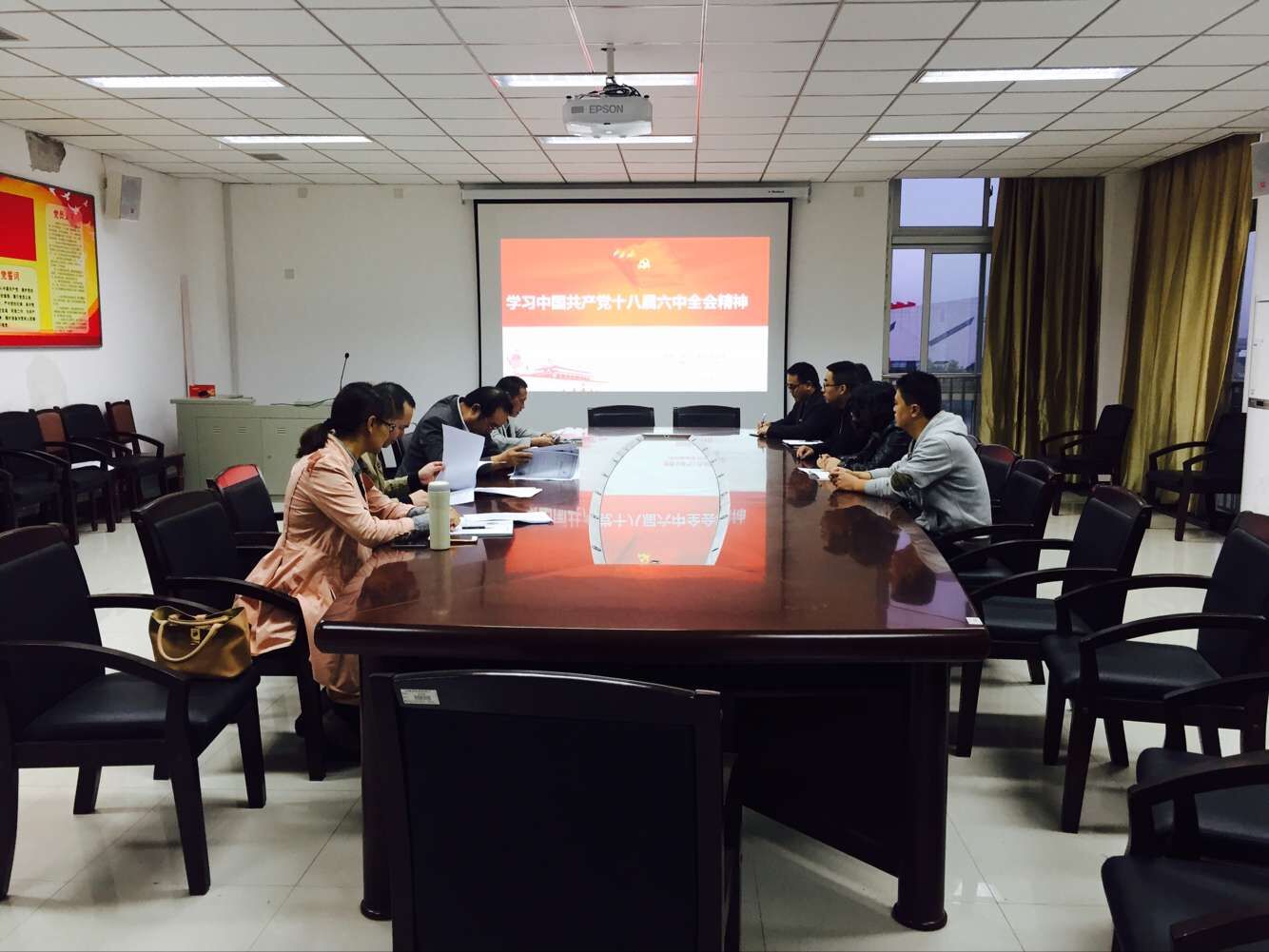 与会人员认真学习了中国共产党十八届中央委员会第六次全体会议公报和中共中央办公厅下发的《关于认真学习宣传党的十八届六中全会精神的通知》精神。党的十八届六中全会是在中国共产党成立95周年、红军长征胜利80周年的历史节点,在全面深化改革、决胜全面建成小康社会的关键时刻召开的一次十分重要的会议。全会号召全党同志紧密团结在以习近平同志为核心的党中央周围,全面深入贯彻本次会议精神,牢固树立政治意识、大局意识、核心意识、看齐意识,坚定不移维护党中央权威和党中央集中统一领导,继续推进全面从严治党,共同营造风清气正的政治生态,确保党团结带领人民不断开创中国特色社会主义事业新局面。这对于统一全党思想,确保党始终成为中国特色社会主义事业的坚强领导力量,实现中华民族伟大复兴的中国梦,具有重大和深远的意义。
