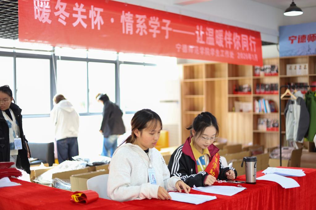 1月16日,宁德师范学院“暖冬关怀·情系学子”主题活动在学生宿舍7号楼一站式社区服务大厅正式启动。活动聚焦家庭经济困难学生冬季保暖需求,为265名学生发放“三合一”套绒冲锋衣,以务实举措传递学校关怀,助力学生安心学习、温暖过冬。