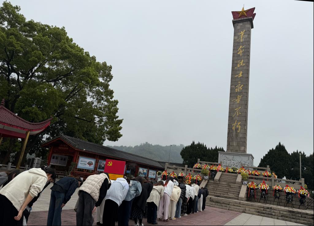 苍松翠柏掩映下的烈士陵园庄严肃穆。14时整,祭扫仪式正式开始。伴随着深沉的哀乐,全体党员及入党积极分子垂首默哀三分钟,向长眠于此的革命先烈致以最崇高的敬意。面向党旗,全体党员举起右拳,重温入党誓词,铿锵有力的誓言回荡在陵园上空。师生们怀着无比崇敬的心情向烈士纪念碑鞠躬致敬,并缓步绕行瞻仰,轻轻放下手中的小白花。在心得分享环节,大家结合岗位职责与学业规划踊跃发言,一致表示要以实干担当告慰英灵,让英烈精神落地生根。