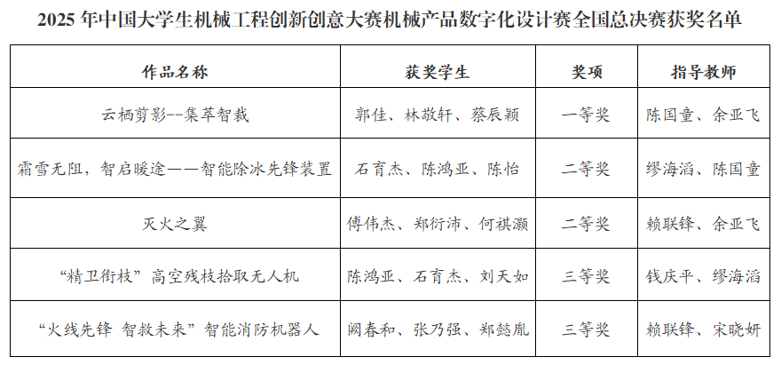 我校学子在2025年中国大学生机械工程创新创意大赛机械产品数字化设计赛全国总决赛中获佳绩