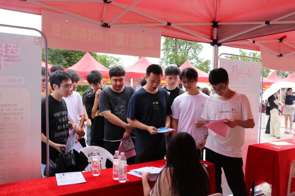 当日,东侨校区求索大道的秋季校园招聘会更显热闹。70余家企业涵盖教育、信息技术、生物医药、文化创意等领域,提供岗位1500余个。其中,福州市人社局、厦门市人才服务中心组团带来20余家高新技术企业,成为现场亮点。招聘会上,毕业生手持简历与HR深入交流岗位要求与发展路径,企业则重点介绍薪资福利与晋升通道,部分企业当场开展“初面”,不少学生现场达成初步就业意向。