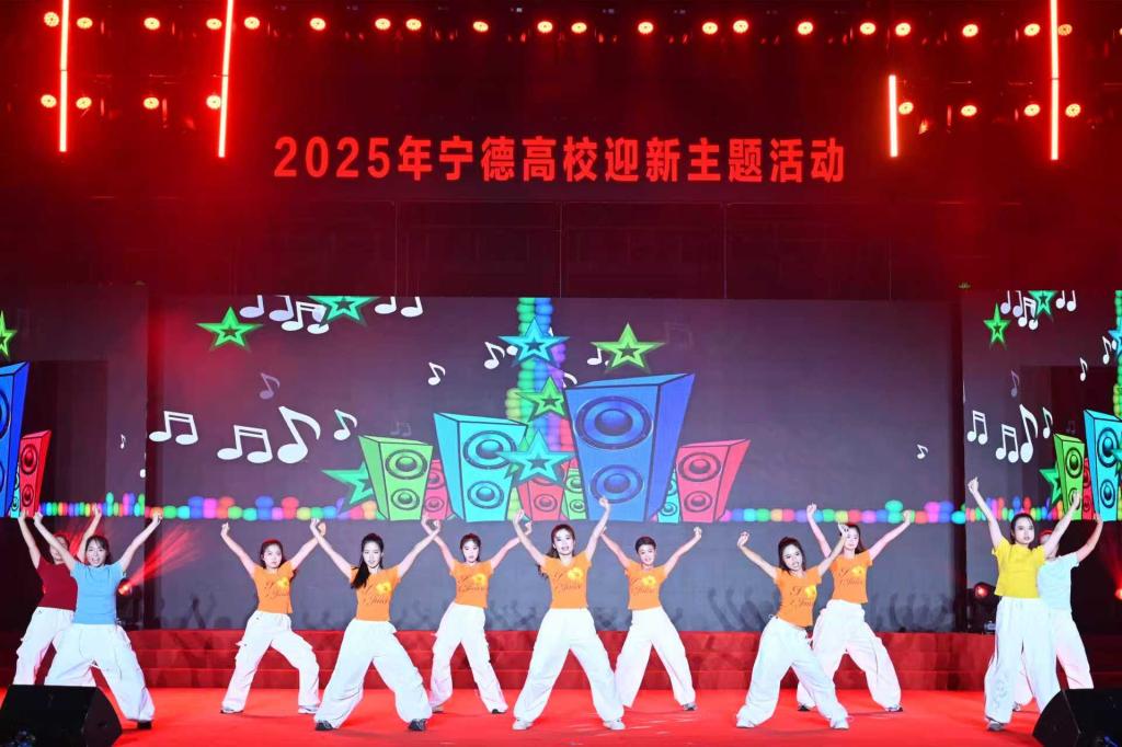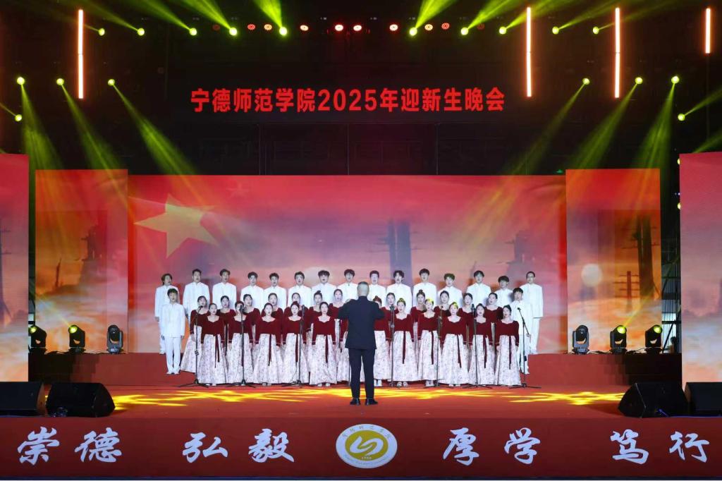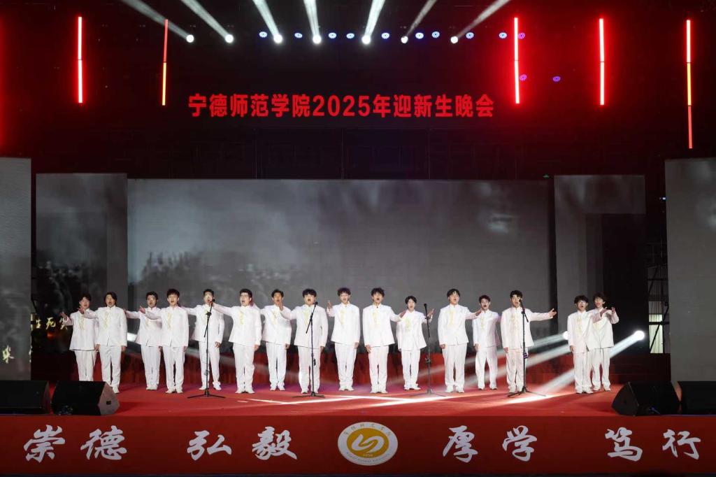 整台晚会以红色主线贯穿始终,通过多元艺术形式将历史的烽烟与青春的朝气在舞台上交汇呈现,在跨越时空的精神对话中,构筑起震撼人心的精神图谱。教育学院王育红副教授创作的组歌《铮铮铁骨》,以雄浑激越的旋律再现“百丈岩战斗”的悲壮史诗,20余名音乐系学生用饱含深情的演唱,让在场观众仿佛置身那个血火交织的英雄年代。情景表演《青年志》,则通过艺术化呈现排雷英雄杜富国的事迹,展现了新时代青年“强国有我”的担当精神。校团委大学生艺术团带来的街舞《燃烧吧,宁师人》,以充满活力的肢体语言诠释了青春激情;而语言文化学院师生创作的朗诵《密电听风》,则通过声情并茂的表演,向隐秘战线英雄蔡威致以崇高敬意。当教育学院师生高唱《保卫黄河》时,全场观众自发形成的合唱浪潮,将晚会推向情感高潮。