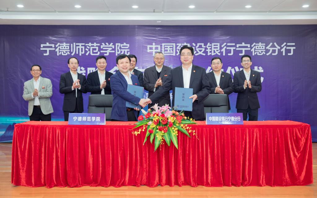 12月11日上午,我校与中国建设银行宁德分行战略合作协议签订仪式在中国建设银行宁德分行大厦三楼会议室举行,校党委书记夏良玉、校长魏远竹、副校长颜桂炀,中国建设银行福建省分行副行长林平、宁德分行行长吴平、副行长吴小群、何碧萼,以及双方相关业务门负责人参加了签约仪式。颜桂炀、吴平分别代表双方签署合作协议。