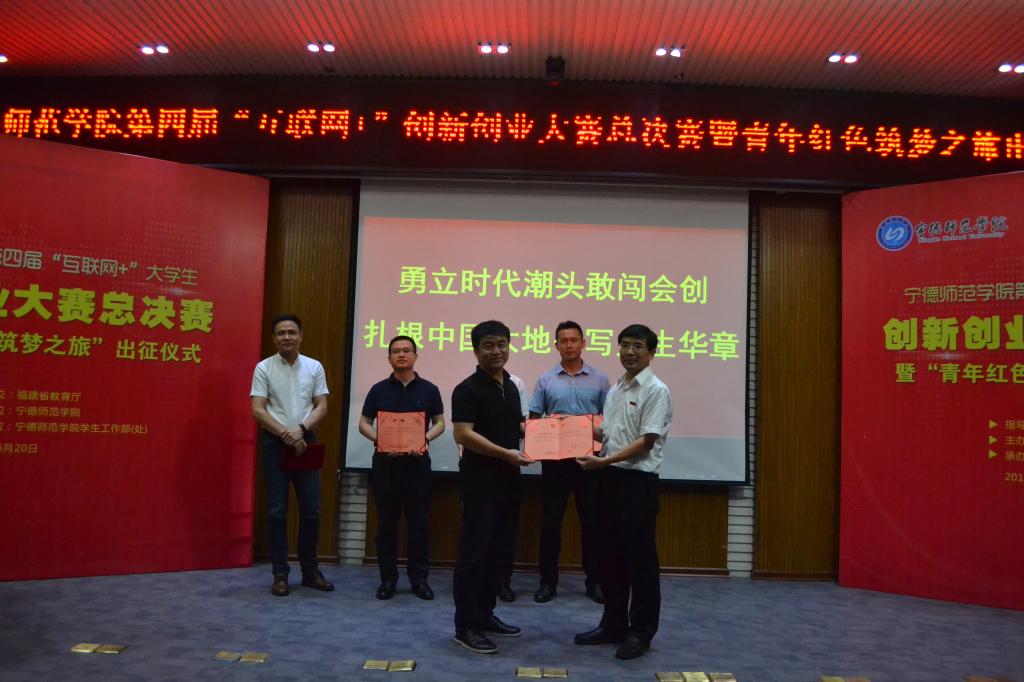 6月20日,宁德师范学院第四届“互联网+”大学生创新创业大赛决赛暨“青年红色筑梦之旅”出征仪式在行政楼三楼报告厅隆重举行。中国高校创新创业孵化器联盟理事,天使投资人,教育部中国“互联网+”大学生创新创业大赛专家委员会委员庄岩;红袍天使投资创始人董事长曹明浩;福建省互联网创业促进会导师,福建省赛金奖项目指导老师郭清;学友共创(福建)孵化器管理服务有限公司总经理张银福;教育部万名优秀创新创业导师,福建省互联网经济促进会专家顾问陈俊等嘉宾受邀担任本次评委。校长魏远竹,副校长颜桂炀,学生工作部(处)、教务处、科研处、团委职能部门负责人,各学院党政领导,入围决赛的团队成员和项目指导老师等共150多人参加了决赛路演活动。副校长颜桂炀主持了有关活动。