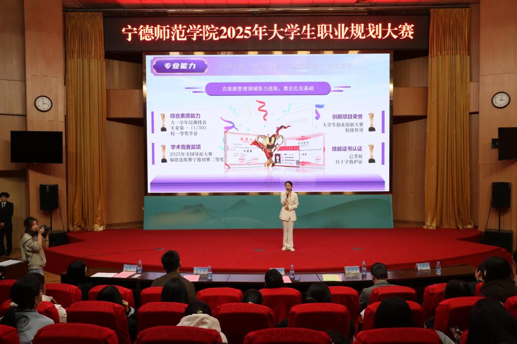 为贯彻落实党中央、国务院及省委、省政府关于做好高校毕业生就业工作的决策部署,强化职业生涯教育和就业指导,提升大学生职业规划意识与就业核心竞争力,促进高质量充分就业,12月14日,我校在图书馆报告厅举办“筑梦青春志在四方,规划启航职引未来”宁德师范学院2025年大学生职业规划大赛。