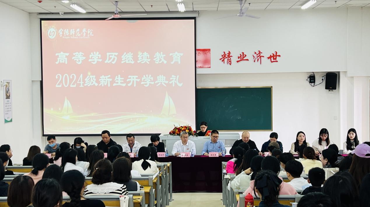 4月20日,我校2024级高等学历继续教育护理学专业新生开学典礼在东侨校区举行。继续教育学院院长郑允贵、医学院院长魏鼎泰,护理学专业班主任、任课教师以及宁德、福州、龙岩和南平籍新生代表170多人参加开学典礼。