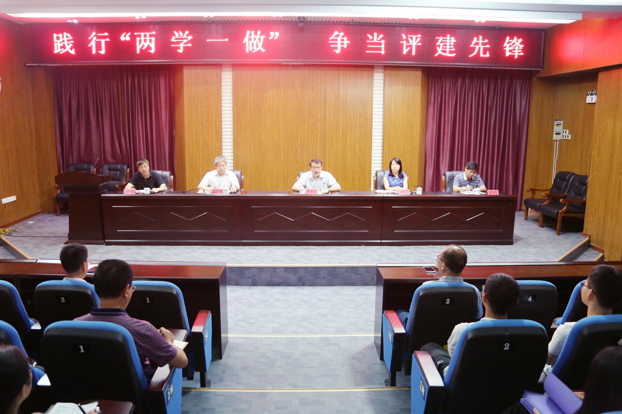 9月13日下午,我校在行政楼三楼报告厅召开“践行‘两学一做’、争当评建先锋”动员大会,号召全校党员自觉践行“两学一做”,在评建工作中争当先锋,带领和团结全体教职员工全力以赴做好迎评促建各项工作。