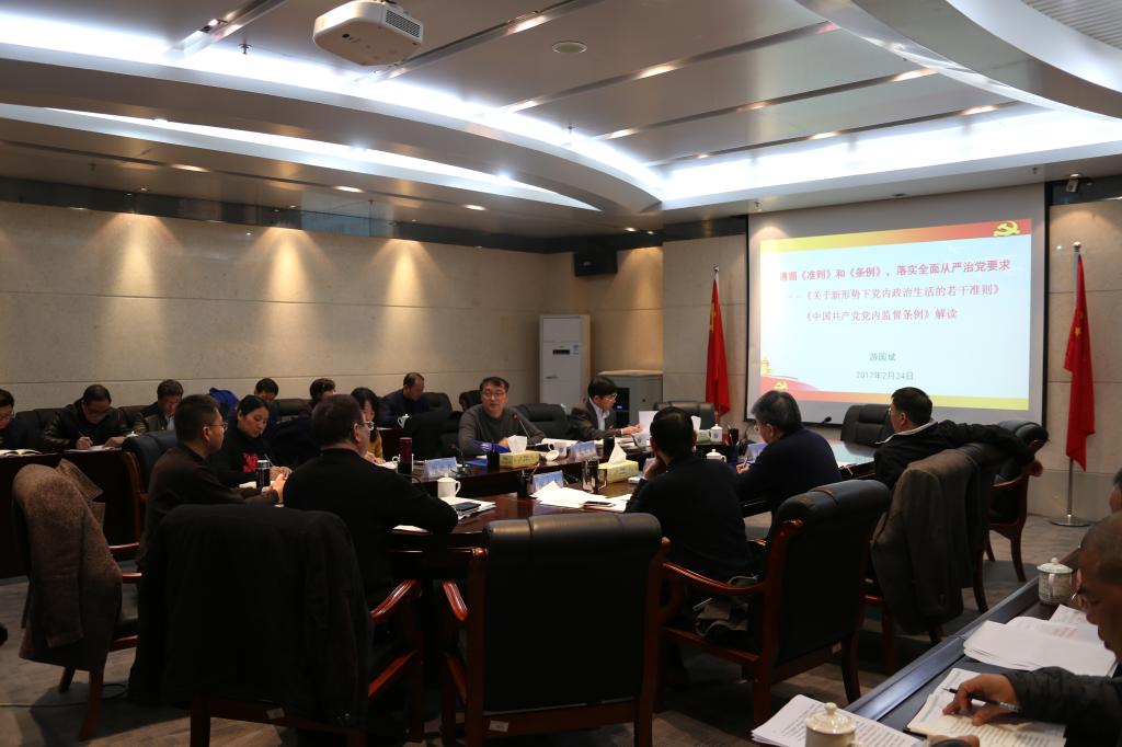 2月24日上午,我校党委召开2017年理论中心组第二次学习会(扩大)专题学习《关于新形势下党内政治生活的若干准则》和《中国共产党党内监督条例》。校领导,各系党总支书记,以及党政办、组织部、宣传部负责同志参加会议。学习会由校党委书记夏良玉主持。会议指出,党的十八届六中全会聚焦全面从严治党,着眼从根子上铲除产生消极现象和腐败的土壤,审议通过的《关于新形势下党内政治生活的若干准则》和《中国共产党党内监督条例...