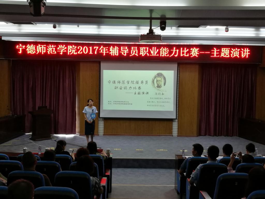6月9日,由学工处主办、校辅导员协会承办的宁德师范学院2017年辅导员职业能力(主题演讲)大赛在东侨校区办公楼三层报告厅举办。校党委徐晓丹副书记、各系党总支和相关部门负责人以及全体辅导员观看了比赛。本次辅导员职业能力大赛由各系选派1名专职辅导员参赛,严格按照省赛的程序进行,并邀请了工作经验丰富的一线辅导员担任评委。12名参赛辅导员现场抽题,经过10分钟的准备之后完成5分钟的演讲,此次比赛的题目紧扣我校今年...
