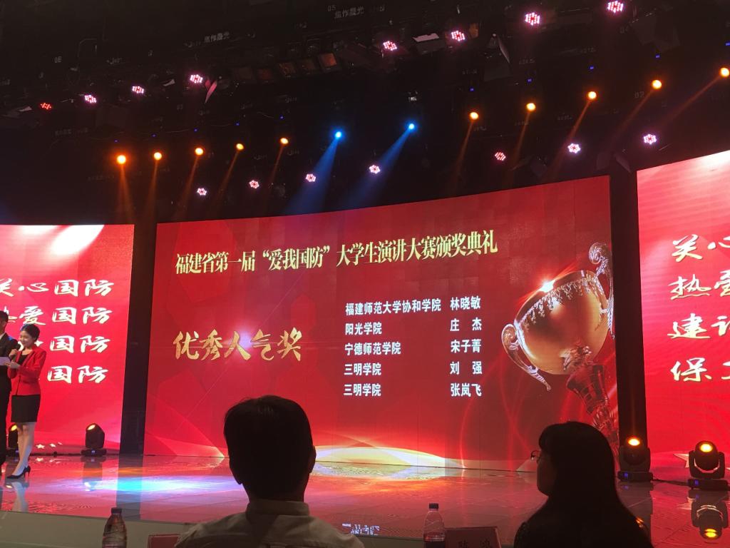 2017年10月30日,“爱我国防”福建省大学生主题演讲比赛在福建师范大学现代技术中心举行。来自全省各高校的300多名选手报名参赛,历经网络选拔,专家评审,共有18组选手突出重围,成功站到省赛舞台之上。其中,我校信息与机电工程学院2016级电子信息工程班荣怡飞,语言与文化学院文化创意与新媒体2班宋子菁同学顺利跻身决赛行列。大赛分为主题演讲与即兴演讲两个环节,经过激烈比拼,荣怡飞同学荣获此次比赛三等奖,宋子菁同学...