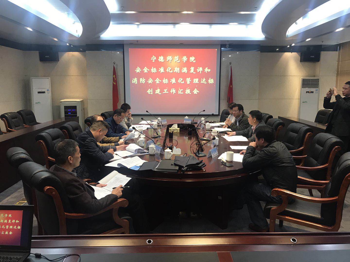 11月29日,宁德市教育局“两项标准化”考评小组到我校考查安全标准化期满复评和消防安全标准化管理达标工作。校长魏远竹、副校长谢向东会见了考评组组长王承挺副局长等一行,学校相关部门负责人陪同。考评组分成三组进行实地考查和文档查阅。实地考查小组主要考查了学校危险化学药品仓库、图书馆、食堂、商业店铺、学生宿舍楼和安防指挥中心;文档查阅小组认真查阅学校3年来安全标准化工作开展情况和今年学校消防安全工作开展情...
