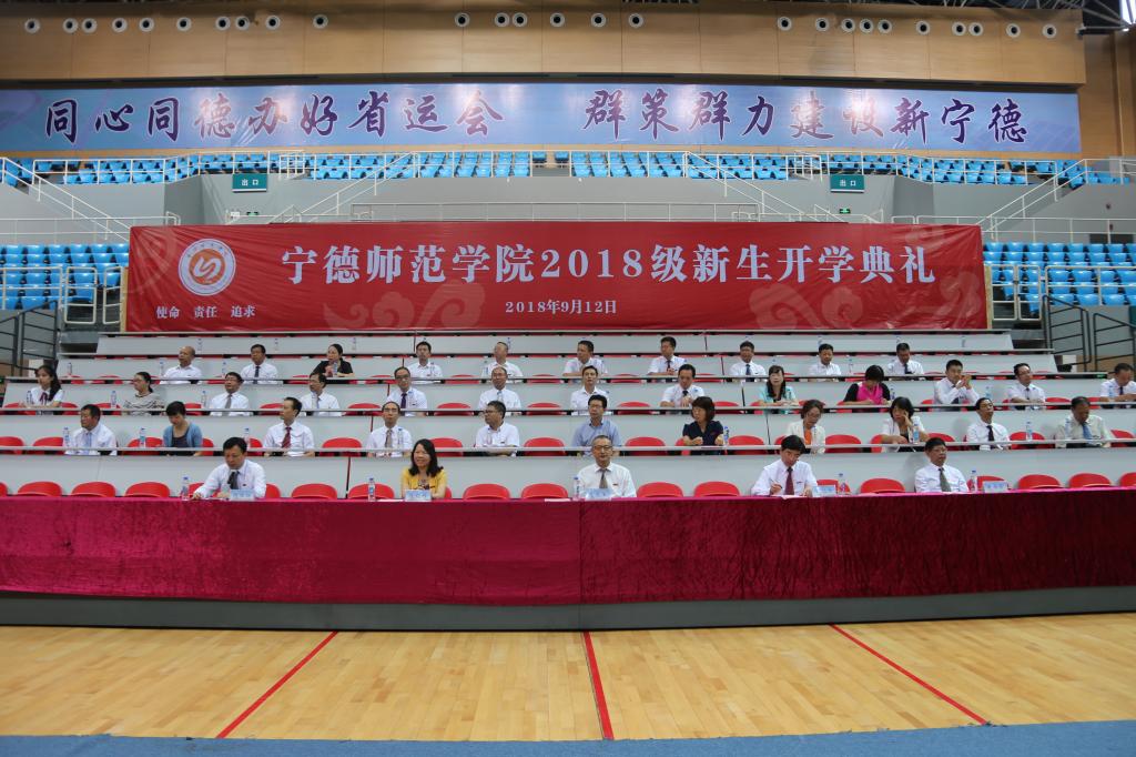 9月12日上午,我校在东侨校区体育馆举行2018级新生开学典礼。校领导夏良玉、魏远竹、徐晓丹、谢向东、颜桂炀出席大会。校长魏远竹发表致辞,副校长颜桂炀主持开学典礼。各二级学院党政负责人、各部门负责人、教职工代表、新生辅导员以及2018级全体新同学参加典礼。开学典礼在雄壮的国歌声中开幕。魏远竹校长代表全校师生对2875位加入“宁德师范学院”这个温暖大家庭的新生表示热烈的欢迎。他指出,2018级新生是党的十九大和新...