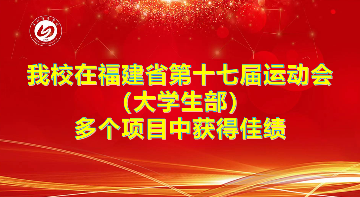 8月2日-7日,福建省第十七届运动会大学生部田径比赛在泉州职业技术大学举行。我校田径队15名运动员在领队朱昌富、教练员欧阳榕和谢佳钦的带领下,取得了5金4银6铜、总分排名第三的好成绩,10项成绩刷新学校田径记录。在本次比赛中,体育学院廖文静获跳高比赛冠军、谢水芬获标枪比赛冠军、陈玫蓉获100米栏比赛冠军、吴荣辉获撑杆跳高比赛冠军,以及陈玫蓉、谢水芬、林倩雯、陈晶晶获4Í100米接力比赛冠军。本次比赛由福建省教育...