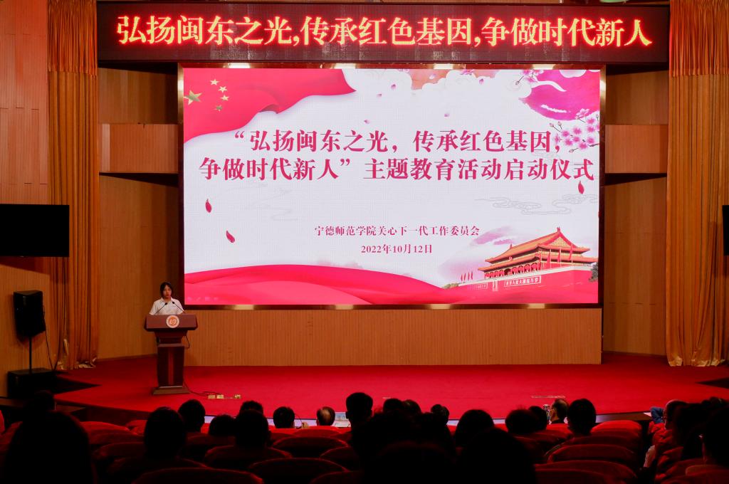 为深入学习贯彻习近平总书记关于关心下一代工作的系列重要指示批示精神,用习近平新时代中国特色社会主义思想铸魂育人,以实际行动迎接党的二十大胜利召开,10月12日晚,我校关工委在图书馆报告厅举办2022年“弘扬闽东之光,传承红色基因,争做时代新人”主题教育活动启动仪式。校党委副书记、校关工委主任江潮炳,校关工委常务副主任谢仲榛、校关委副主任黄健、各二级学院关工委成员,以及2022级新生代表190余人参加了活动。活...