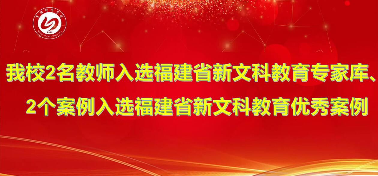 近日,福建省新文科教育研究中心公布了新文科专家库建设、优秀教学案例入选名单。我校邓惠明、黄玉桃两位教师入选福建省新文科教育专家库,吴梅芳老师的《生命体验与激扬青春:带你沉浸式学习<外国文学史>》、黄玉桃老师的《中国特色反贫困理论的宁德实践融入高校思政课程体系建设案例》入选福建省新文科教育优秀案例。本次案例征集由福建省新文科教育研究中心组织,旨在全面总结和展示我省高校在新文科建设中形成的经验和成果...