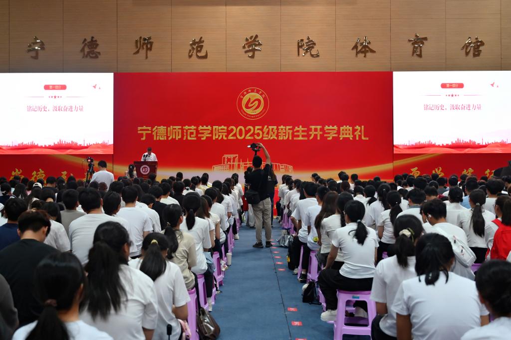 金秋启新程,逐梦正扬帆。9月17日,我校在体育馆隆重举行2025级新生开学典礼,共同见证3000多名新生加入宁师,以青春之名共赴未来之约。校党委书记林清泉,校党委副书记江潮炳,副校长颜桂炀,副校长陈旺玉,校纪委书记、监察专员苏天恩出席开学典礼。林清泉致辞并为23位新生辅导员颁发聘书,嘱托他们要爱岗敬业、甘于奉献,以开阔的视野创新育人模式,用温暖的行动陪伴学生成长,努力做学生为学、为事、为人的“大先生”。江潮...