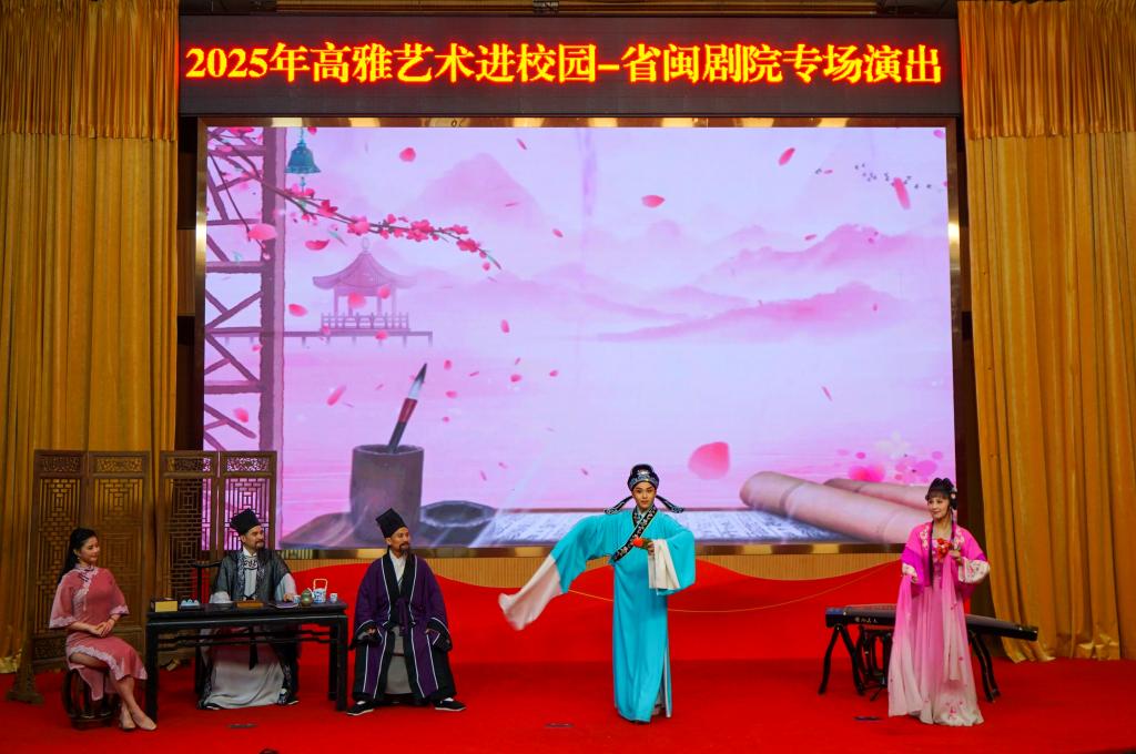 11月6日晚,由福建省文化和旅游厅、福建省教育厅主办,宁德师范学院承办,福建省实验闽剧院演出的高雅艺术进校园活动——闽剧沉浸式戏剧《福“见”儒林》在我校图书馆报告厅举行。闽剧演员以扎实的表演功底、精湛的艺术技巧,上演一场别开生面的戏曲盛宴,吸引了全校300余名师生到场观看。闽剧又称福州戏,是现存唯一用福州方言演唱、念白的戏曲剧种,流行于闽中、闽东、闽北地区,是第一批国家非物质文化遗产。本次演绎的《福...