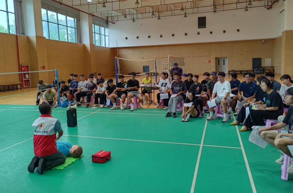 6月15日,体育学院联合蕉城区红十字会救护指导人员在东侨校区体育馆组织开展红十字救护员培训与考核,百余名同学参与这场守护生命的“实战”演练。培训聚焦心肺复苏操作、自动体外除颤器使用及创伤急救包扎实操进行课程设计。授课讲师深入浅出,详细讲解了黄金救援4分钟的重要性和胸外按压、畅通气道、人工呼吸及 AED使用的规范步骤;现场演示了头部、手臂、腿部等部位伤口的加压包扎和止血技巧。学员们认真学习操作步骤,并化...